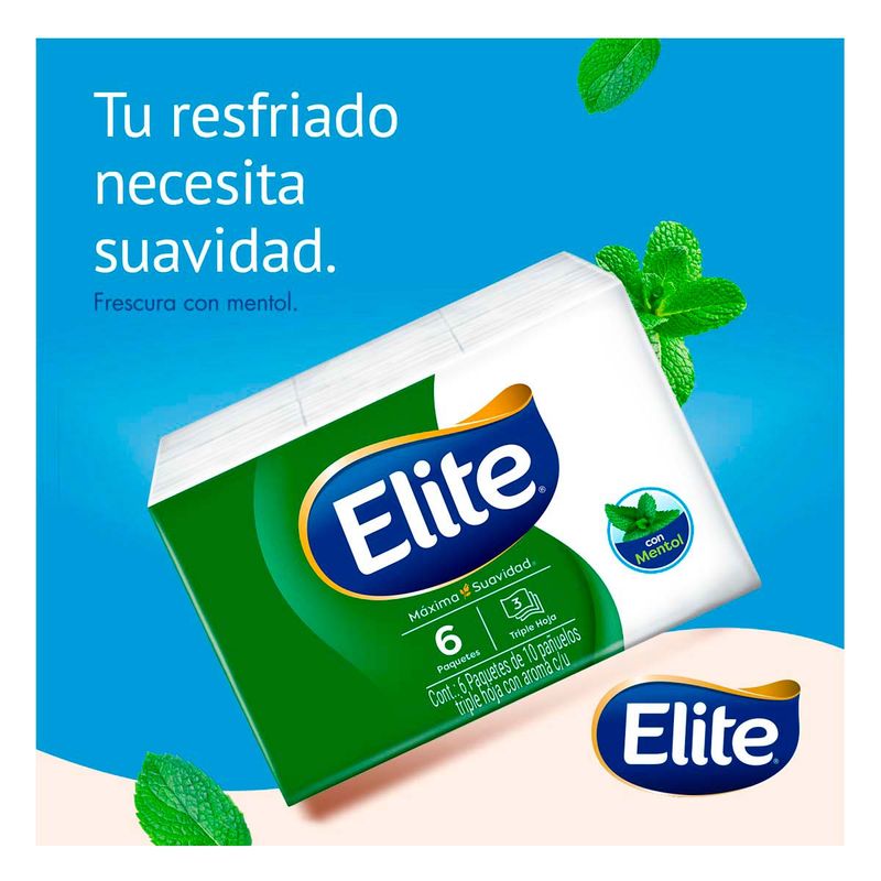 ChedrauiLleva contigo la protección incomparable de los Pañuelos Elite Mentol Triple Hoja, en su presentación de 6 paquetes con 10 pañuelos. Así tendrás una protección durante largo tiempo. Su textura es tan suave que tu piel se sentirá consentida para cuando desees utilizarla, además, es tan versátil que podrás usarla para cada necesidad. Lo mejor de todo es que el tamaño es ideal para evitar el desperdicio y sus 3 hojas vuelven al pañuelo más resistente.
