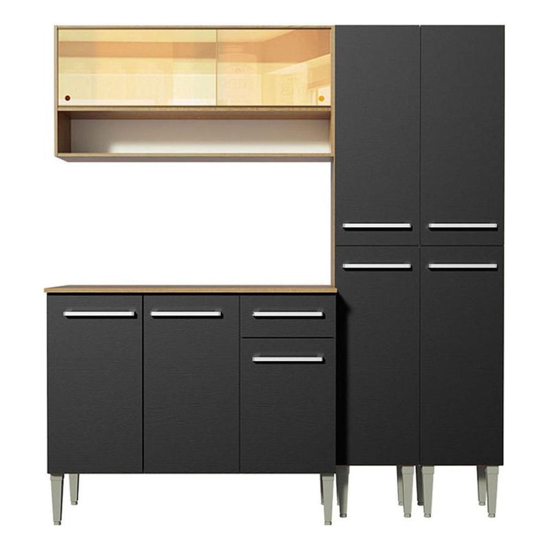 MadesaCompacta en la medida justa para su ambiente. Conozca la cocina Emilly Winter de Madesa.Fabricada con materiales de calidad, tiene tiradores con detalles de aluminio y correderas y bisagras metálicas. Incluye un Gabinete Bajo de 105 cm con tres puertas y un cajón, una alacena de 105 cm con dos puertas corredizas de vidrio reflejante y un nicho en la parte inferior, un armario tipo despensa doble con cuatro puertas, todo separado, lo que permite montarlo según el espacio disponible.El Gabinete Superior tiene una gran hornacina y dos puertas corredizas con vidrio reflejante, que pueden reflejar el espacio o mostrar el interior del mueble, variando según la luz de la habitación. Este detalle ofrece mucha elegancia...