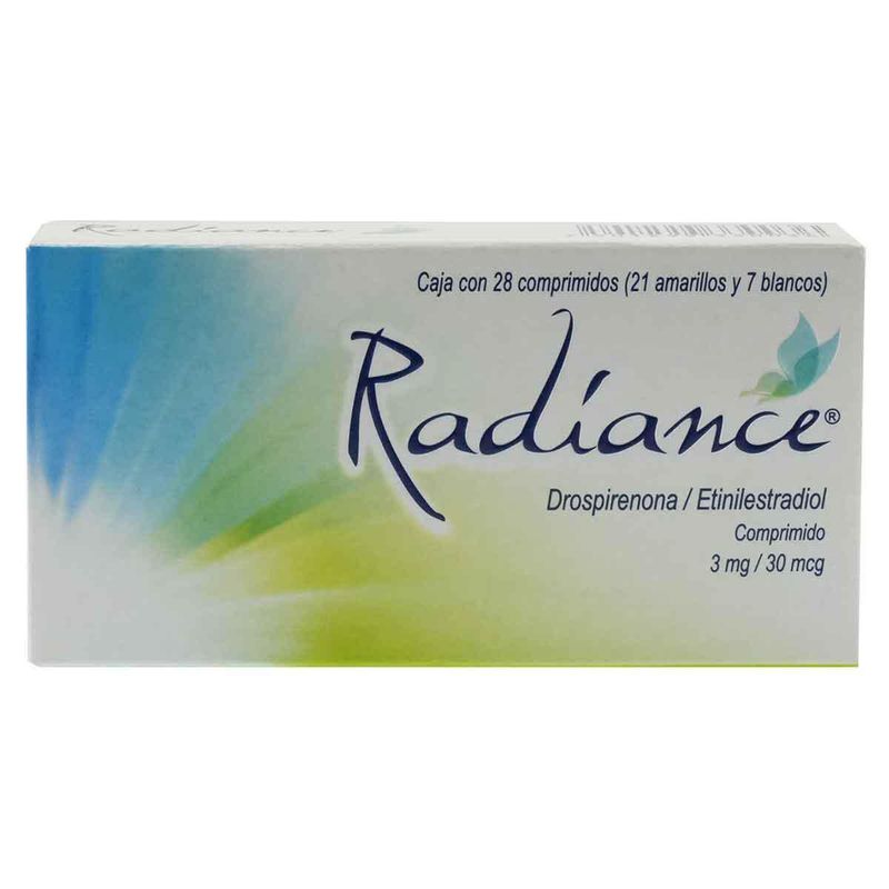 Contiene 21 comprimidos amarillos y 7 blancos. Sustancia activa: Drospirenona 3mg / Etinilestradiol 30mcg.