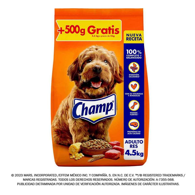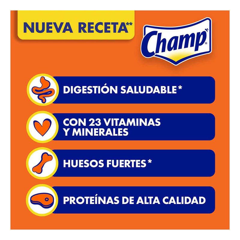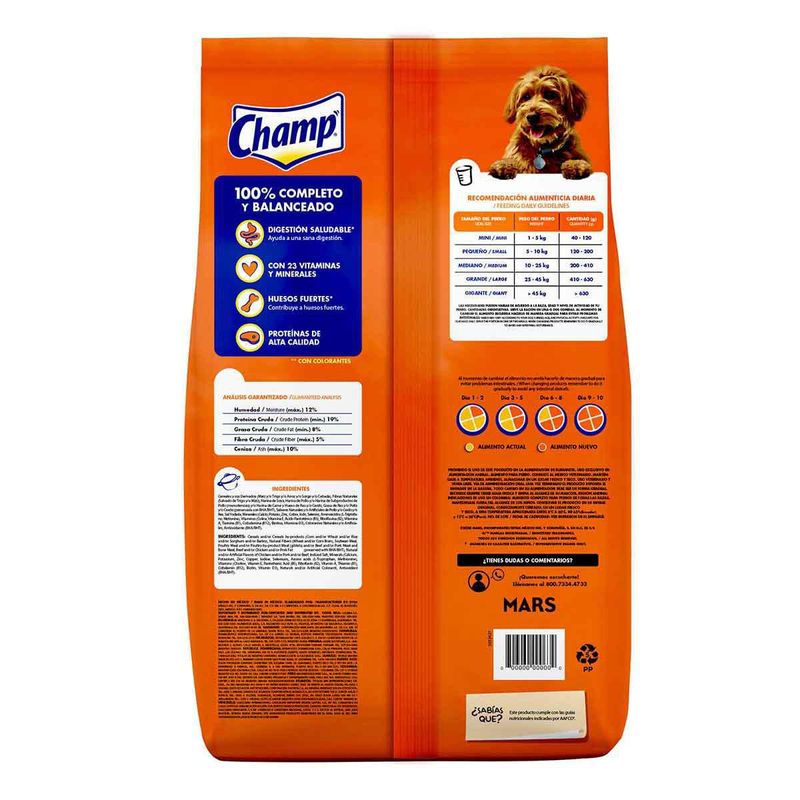 ChedrauiChamp ayuda a mantenerlo saludable a lo largo de su vida. Alimento 100% completo y balanceado para perros adultos.Sin colorantes artificiales. Fibras naturales para su sana digestión. Balance óptimo de nutrientes y proteínas. Todas las razas