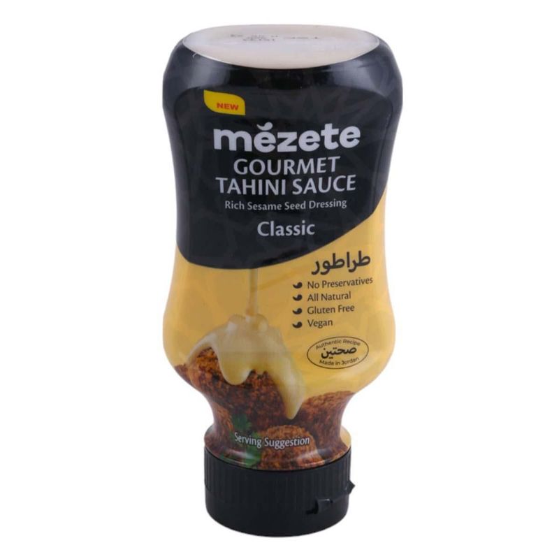Salsa Mezete Clásica Tahini, un delicioso y suave aderezo hecho a base de semillas de sésamo, ideal para acompañar tus ensaladas o mezclar con otros platillos.