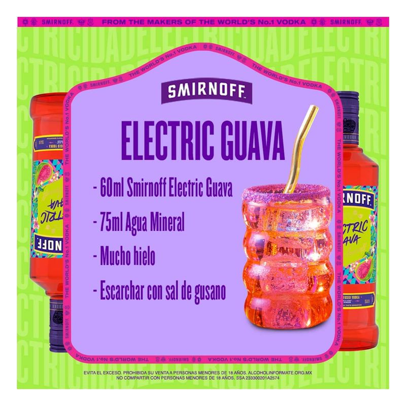 Smirnoff Electric Guava Combina la pureza de Smirnoff con el jugoso sabor de la guayaba y un hint de jengibre